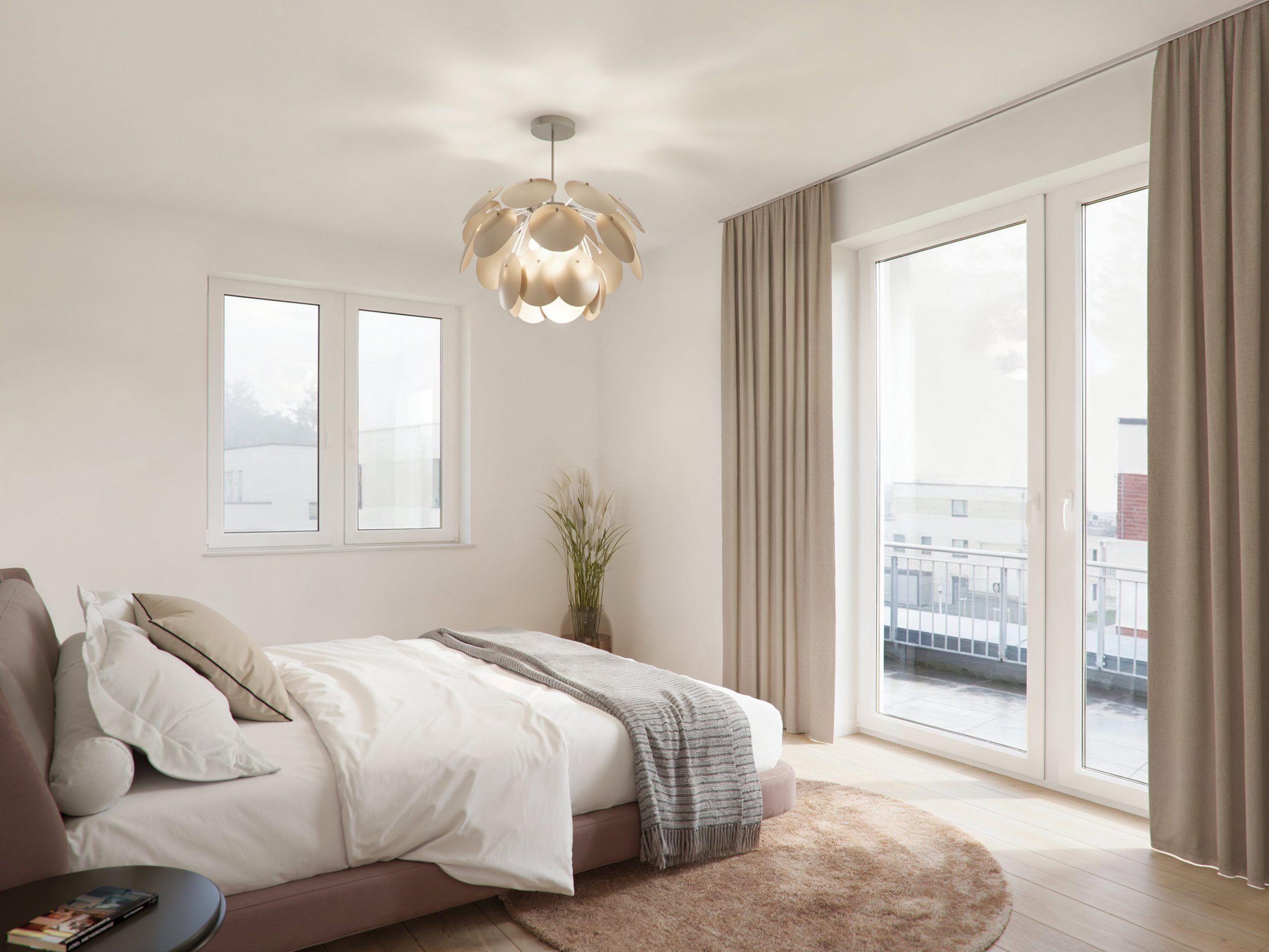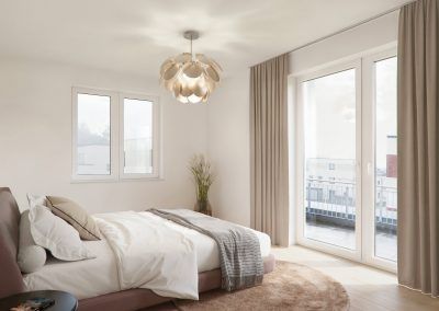 Helle und großzügige Wohn- und Schlafräume mit größtenteils bodentiefen Fenstern