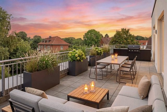 Auch von dem großen und hellen Schlafzimmer sowie einem weiteren Zimmer ist die weitläufige nach Süd-Westen ausgerichtete Dachterrasse begehbar, um entspannte Zeiten bei Sonnenschein zu genießen.